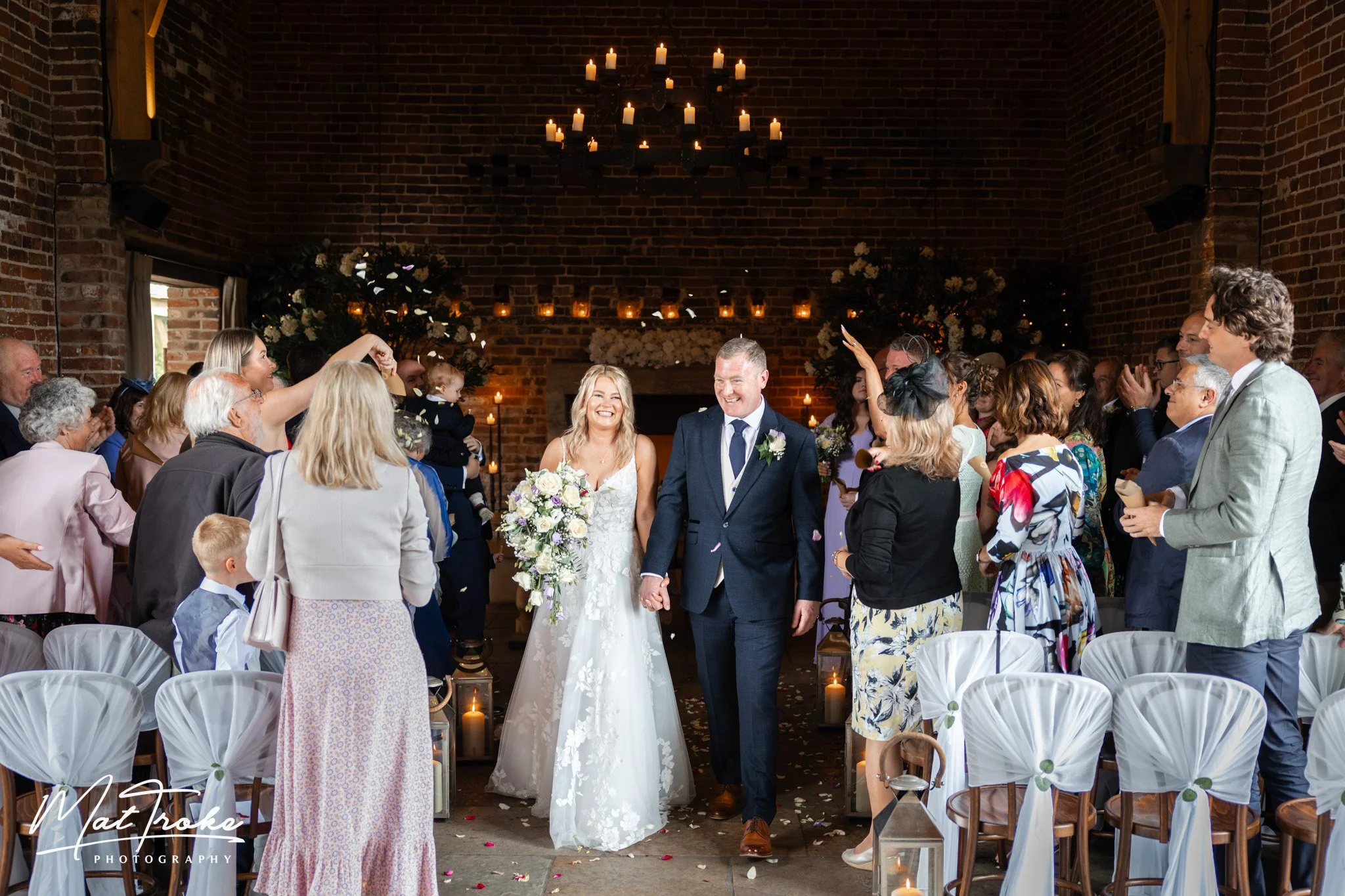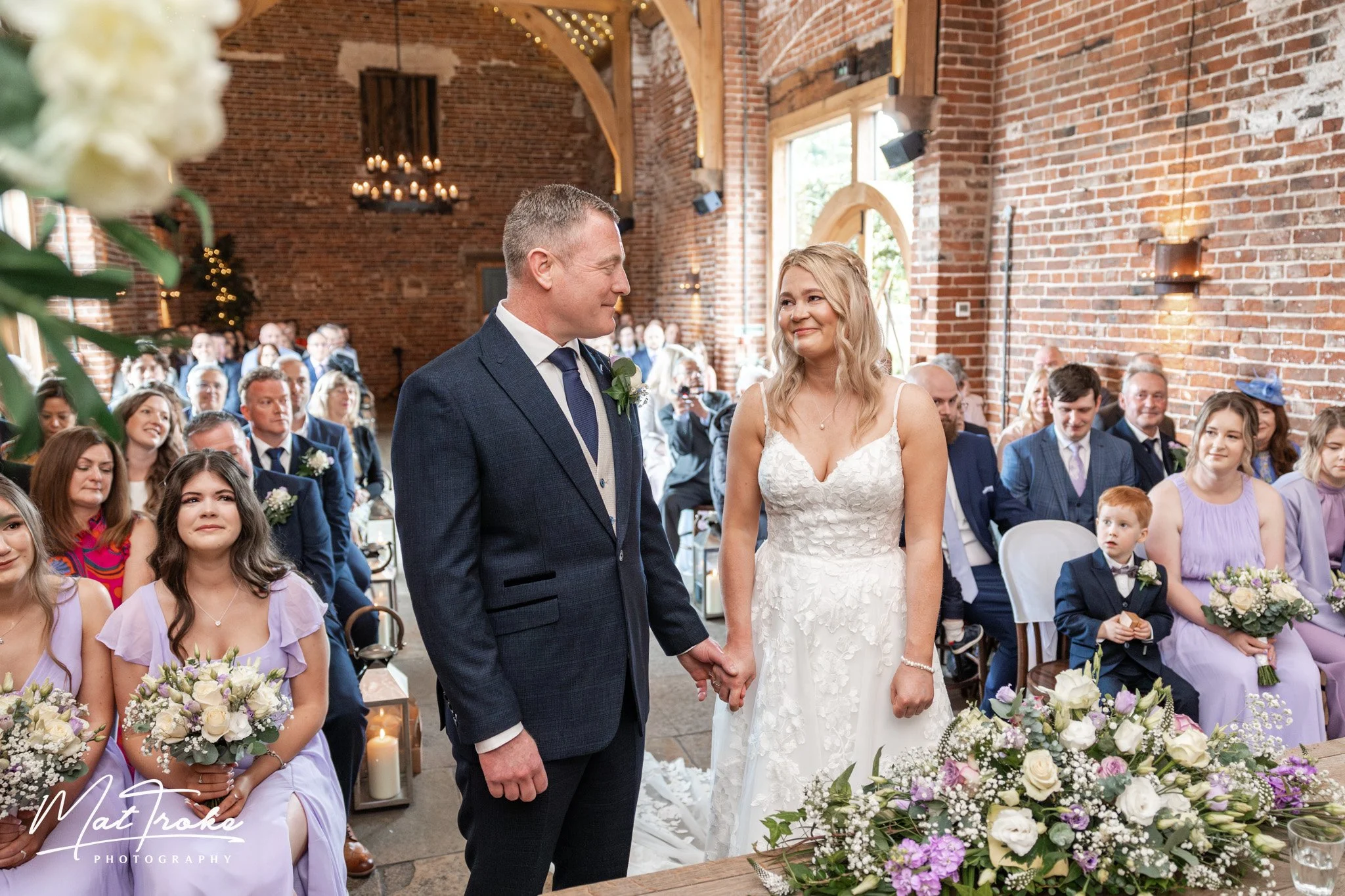 During the ceremony the lighting in the barn can be very challenging for photographers due to the barn being dark at each end but backlit by the central doors. It’s important to choose a wedding photographer who is experienced and has the right equipment to deliver beautifully lit pictures of the most important part of your day.