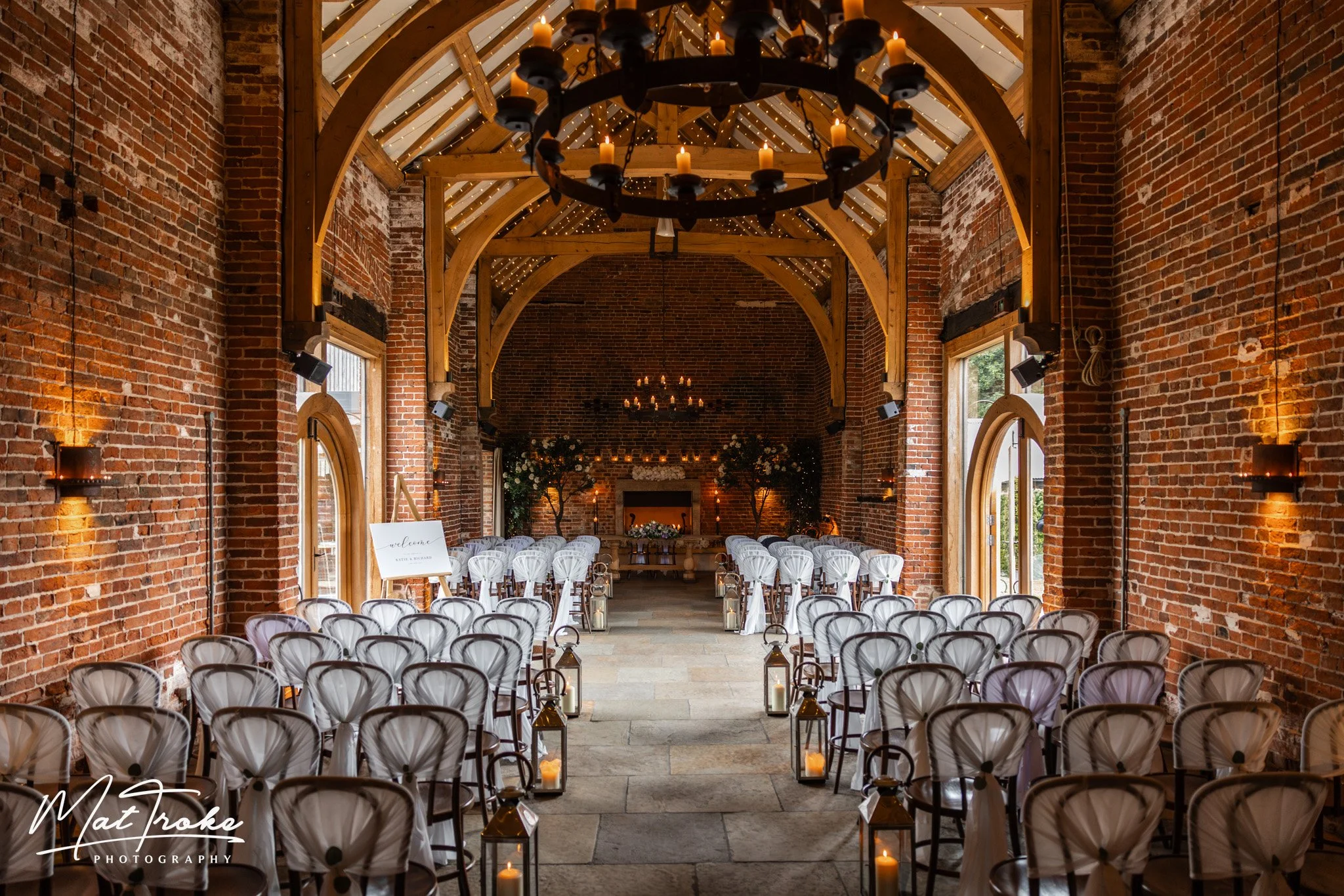There are so many locations for beautiful wedding photography you really are spoilt for choice. The ceremony barn always looks absolutely incredible with it wall to ceiling candle lights. It such a romantic setting, the orange glow of candle light and the gorgeous big oak beams.