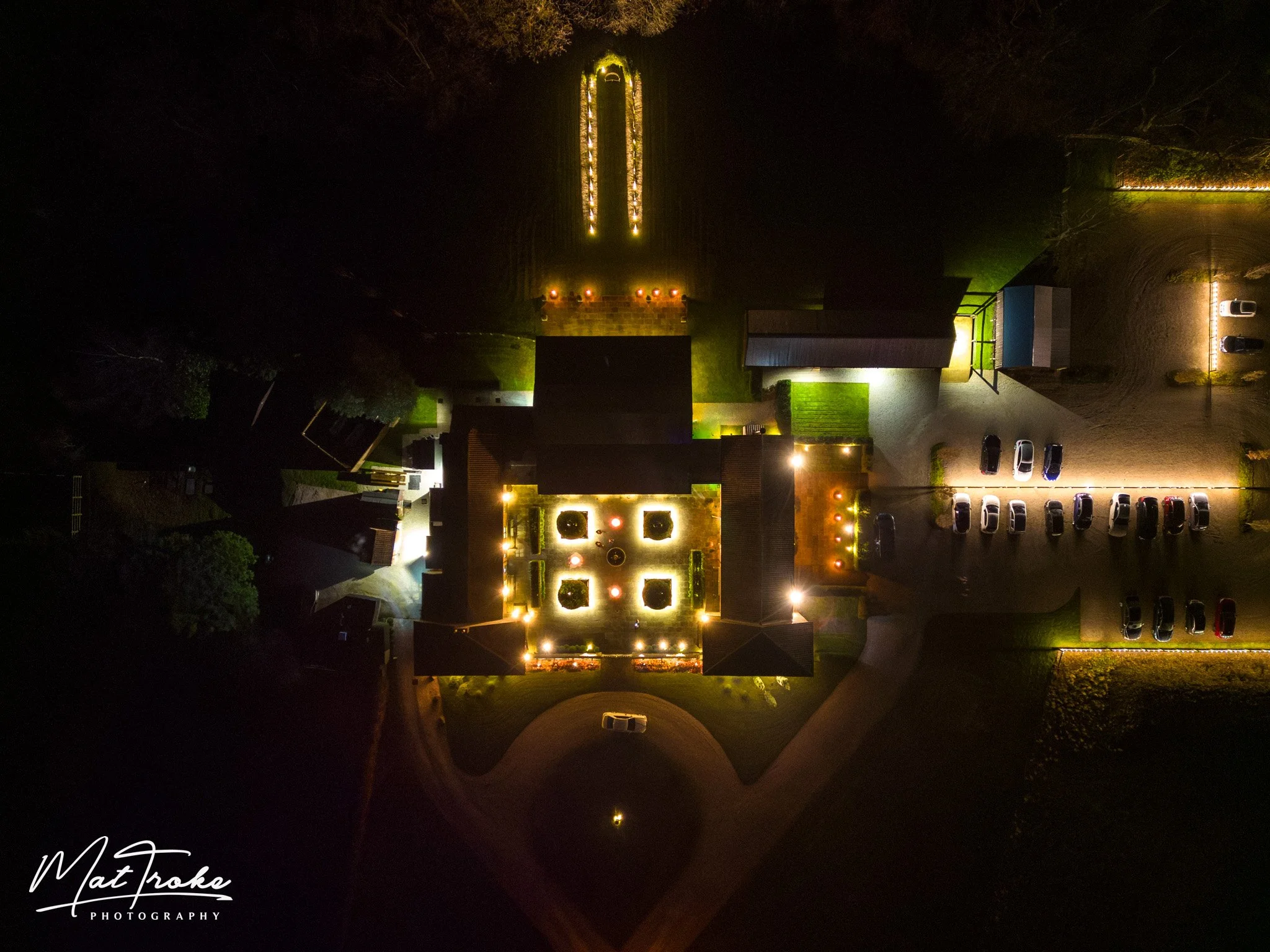 The lined tree area lights up at night and makes for gorgeous pictures what ever the weather!