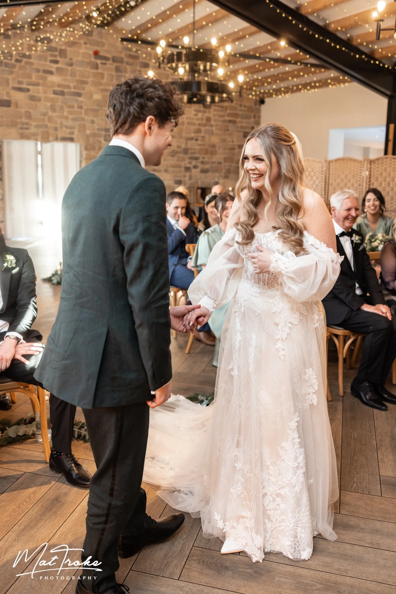 The wedding ceremony room at Stretton Manor Barn is just an absolute stunner, genuinely breath-taking. It’s a wedding photographers dream come true, beautiful natural light complimented by rich glowing artificial lights which I enhance with just a small discreet off camera flash to ensure the ambiance isn’t affected but every detail is perfectly captured.
